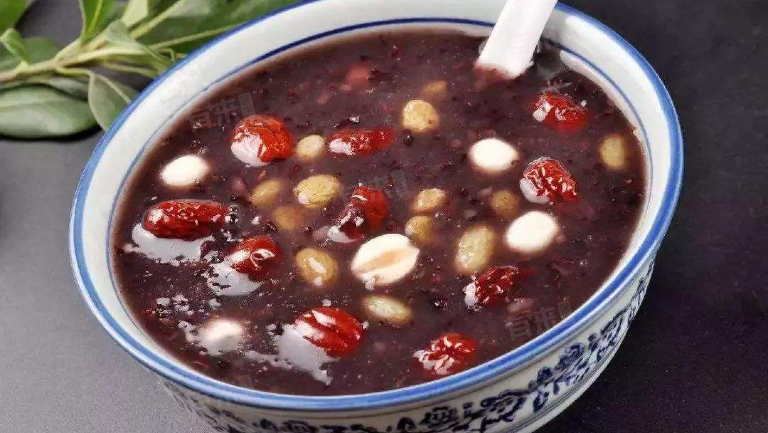 5、八宝粥:传统的八宝粥一般包含糯米、红豆、薏仁、莲子、桂圆、红枣、百合、枸杞等多种食材。这些食材各有其营养价值,如红豆健脾利湿,薏仁清热利水,莲子养心安神、健脾止泻。多种食材相互搭配,营养丰富且全面。将这些食材洗净后混合,加入适量水和冰糖,小火慢熬成粥。八宝粥口感丰富,对肠胃有滋养作用,能增强脾胃功能,改善消化吸收能力。