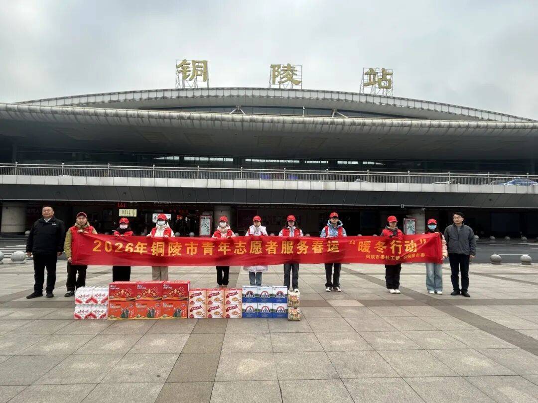 2月10日,市委社会工作部副部长杨国刚、团市委副书记戴玮等人来到铜陵高铁北站、铜陵高铁站,看望慰问参与“暖冬行动”的青年志愿者,为他们送去酸奶、八宝粥等慰问品,并致以新春问候。戴玮与青年志愿者亲切交流,详细了解他们的工作内容、服务时长及后勤保障情况,对大家顶风冒寒、坚守岗位的奉献精神给予充分肯定。同时叮嘱志愿者们注意防寒保暖,做好个人防护,确保志愿服务安全有序开展。